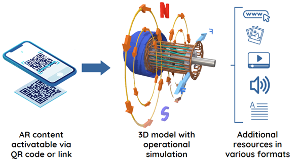 teaching by providing interactive 3D models as part of physical reality, generating